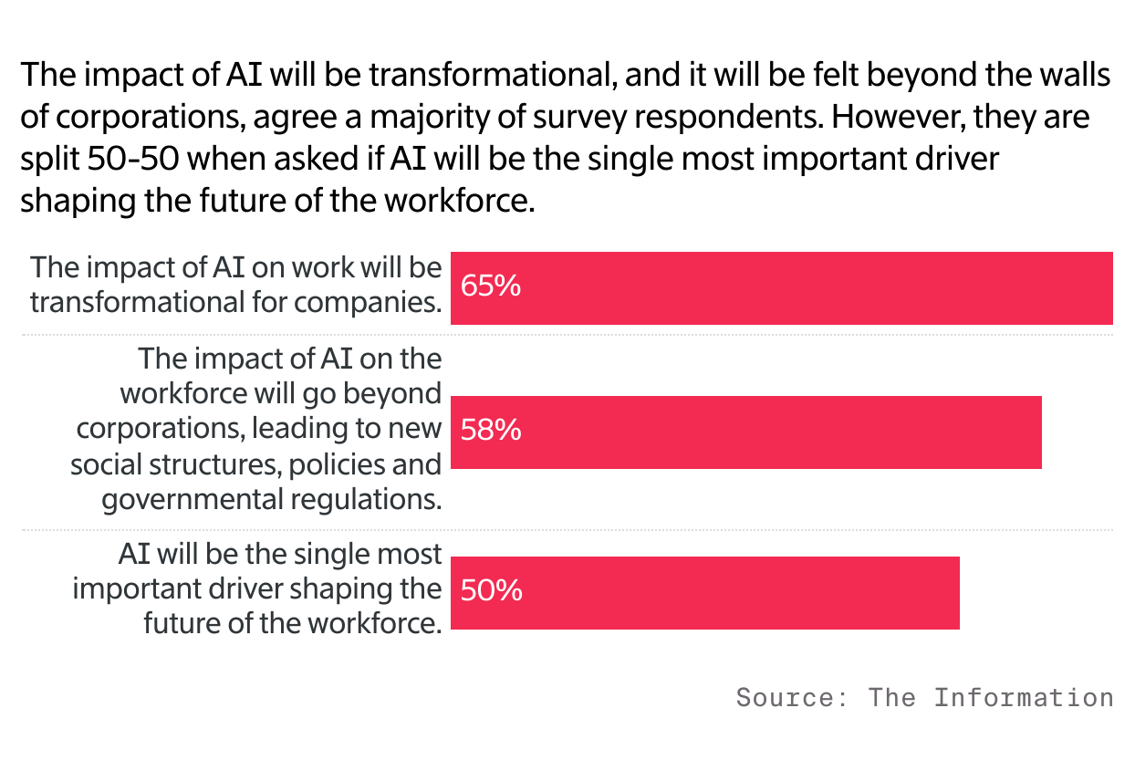 Art: Clark MillerThe topic of artificial intelligence in the workplace touched a nerve with The Information’s readers. Some described AI as significant for the future of our species or as a new industrial revolution, while others said it’s just an app and not a new way to work.